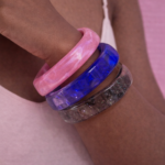 Fun, vibrant, and stylish the Candy Glow Acrylic Bangle Set includes three bold bangles in pink marble, deep blue, and glitter smoke. Designed to be stacked together or worn separately, these bangles instantly elevate your look with a playful, modern edge.