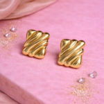 The Golden Wave Statement Earrings feature a sculpted ripple design that reflects light beautifully. Bold yet elegant, these earrings are perfect for women who love statement accessories that still feel classy and refined.