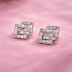 Sleek and contemporary the Modern Radiance Earrings feature layered geometric shapes adorned with brilliant crystals A refined statement piece designed for confident women who appreciate modern luxury